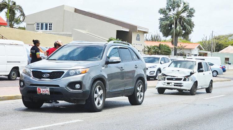 Locual a sosode tawata cu, e auto blanco cu ta un Daihatsu Cuore no a regula su velocidad y ta dal patras di un Kia Sorento. Un señora pasahero den e Kia a resulta herida, e lo a sinti su nek y tawata tin mester di asistencia medico.