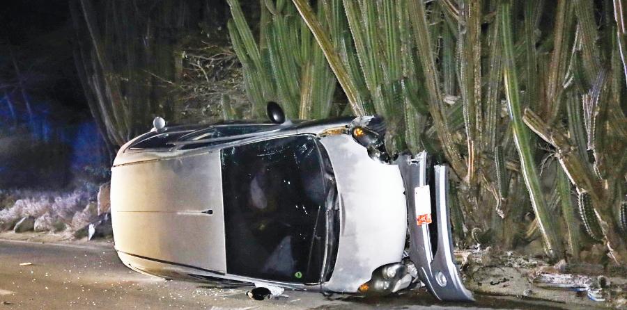 Ta mustra cu e auto a perde control y dal contra barancanan pabou di caminda, y pa despues keda ariba su banda drechi.