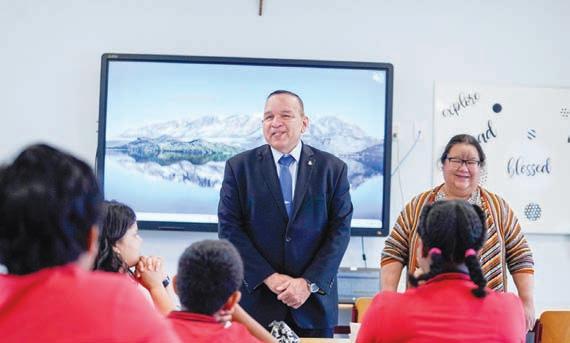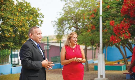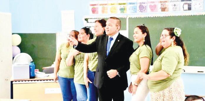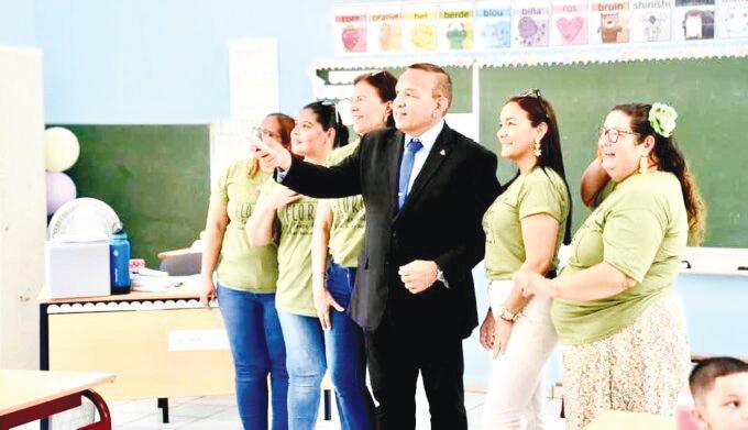 : Diahuebs mainta, Minister Endy Croes a continua cu su bishita na diferente scol rond di Aruba en conexion cu e prome dia di aña escolar 2023 – 2024. Na e ocasion