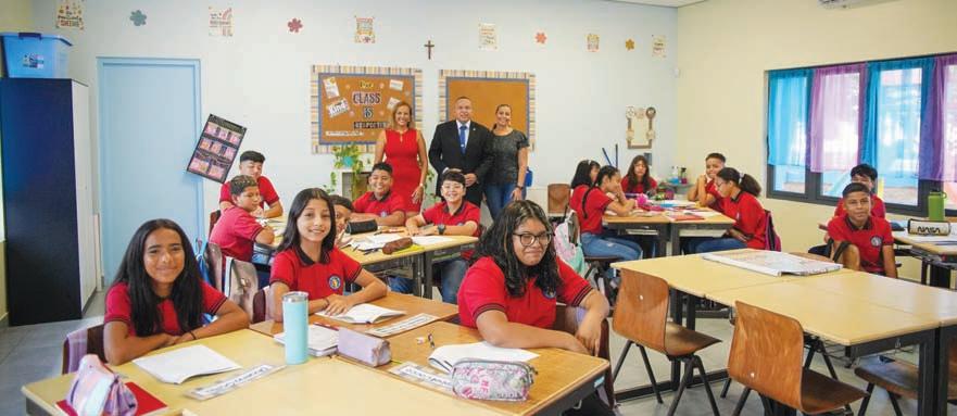 Alabes Sra. Croes – Caster ta desea tur alumno y colega den veld di enseñansa un exitoso aña escolar 2023 –2024. Por ultimo, Minister Endy Croes ta gradici cabesante Sra. Rachelle Croes – Caster, Sra. Karin Berkemeyer di klas 6 A, Sra. Jasmin Kelly di klas B y alumnonan pa e caluroso recepcion. Exito e aña escolar aki!
