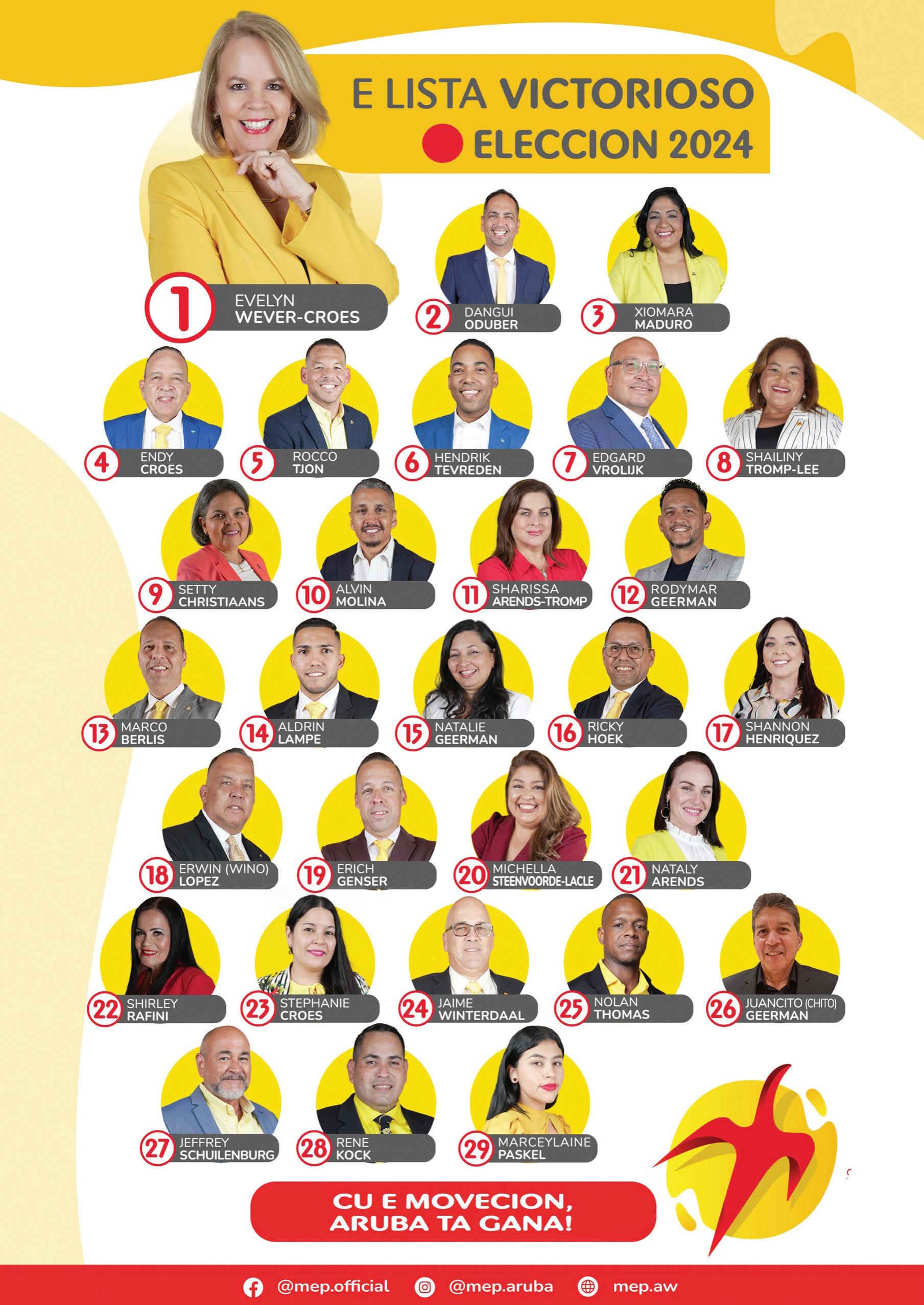 Raiz ta: 1. Geoffrey Wever-1430 voto(FUT) 2. Ruthlyn V. Lindor 3. Ivan F. Croes 4. Ling Wong
