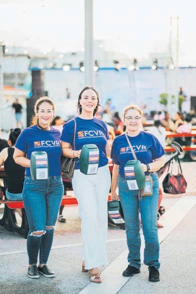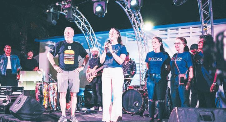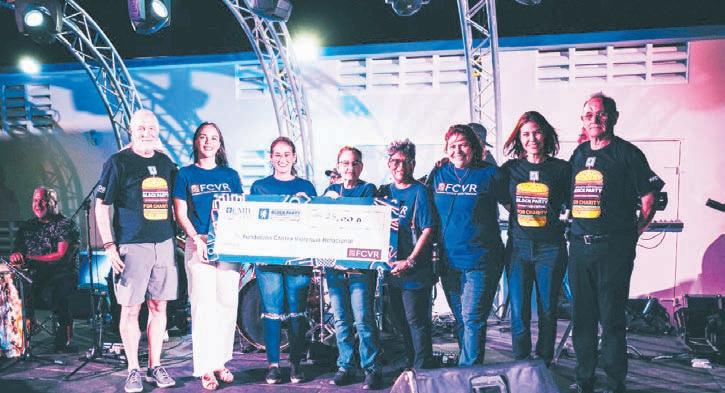 montante di Afl. 25,000.00 cu lo bai completo pa Fundacion Contra Violencia Relacional (FCVR). Srta. Audrey Croes (Presidente di FCVR) hunto cu un ekipo di boluntario di e fundacion a ricibi e check simbolico aki riba escenario di cual suma sigur lo bai pa yuda nan logra sigui asisti e comunidad di Aruba.