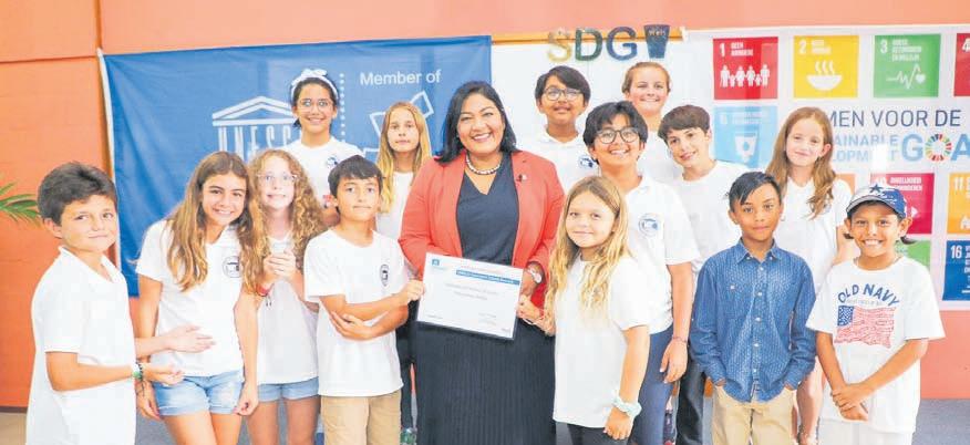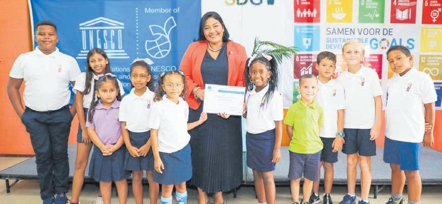 Minister Xiomara Maduro di Cultura tabata presente como Presidente di e Comision Nacional di UNESCO Aruba pa entrega e scolnan nan certificado como Scol di UNESCO. Scolnan di UNESCO ta forma parti di un comunidad global di mas di 12 mil scol rond mundo cu