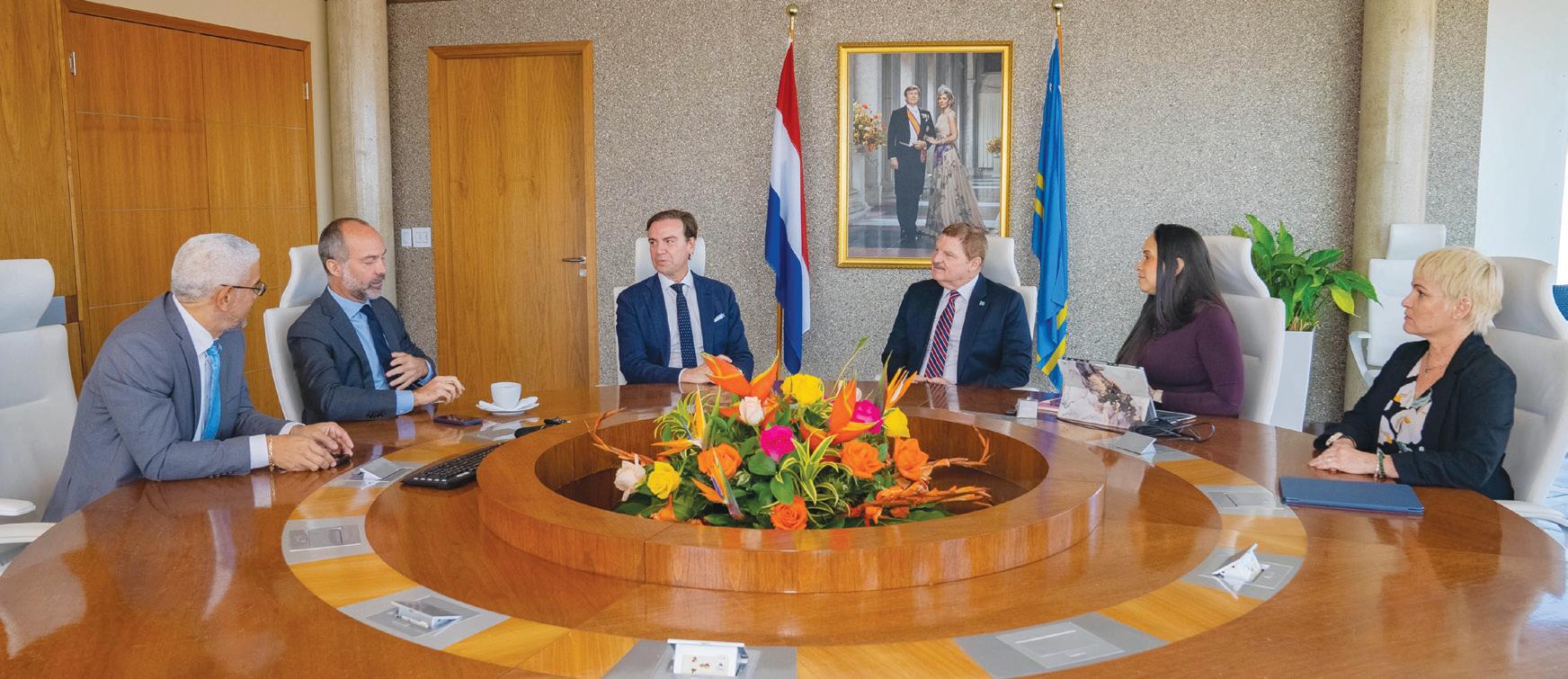 Awe mainta, Prome Minister Mike Eman hunto cu Minister Gerlien Croes a ricibi na Bestuurskantoor Malik Azmani, miembro Hulandes di Parlamento Europeo y representante di e partido liberal VVD, cu ta forma parti di grupo politico Renew Europe. Azmani, kende ta sirbi desde 2019 como Europarlamentario, ta actualmente presidente di delegacion di Parlamento Europeo pa e Asamblea Parlamentario Caribe–Union Europeo. Durante su bishita, a papia riba cooperacion entre Europa y Caribe, y manera con relacionnan institucional por sigui fortalece.