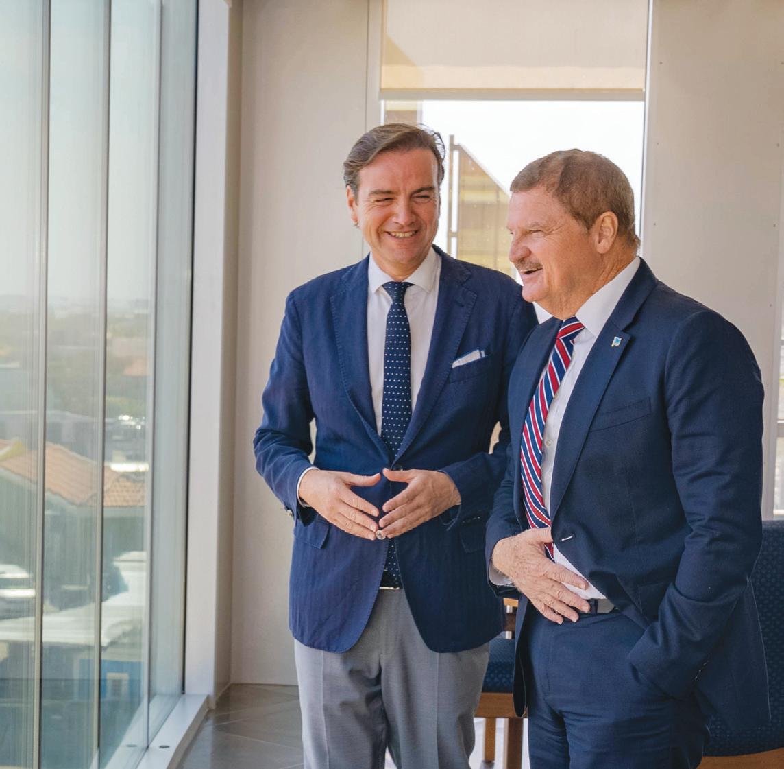 E vision ta amplia: desde revitalisacion di area di refineria, pa innovacion industrial y agricola, te infrastructura y cooperacion regional. Progreso comparti Prome Minister a subraya cu progreso den Reino ta logra ora partnernan ta inverti den otro y mira oportunidadnan comparti.