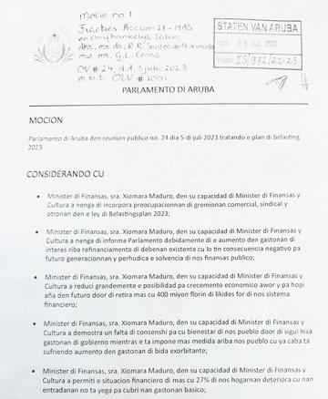 Segun Gerlien: “Den caso di ATA a publica caba cu tabatin 42.8 miyon di entrada netto aña pasa y a calcula 30 miyon pa 2023. Pues aki caba tin 15 miyon florin extra cu ta ricibi for di e dos instancianan. Pues mas entrada di loke a calcula.