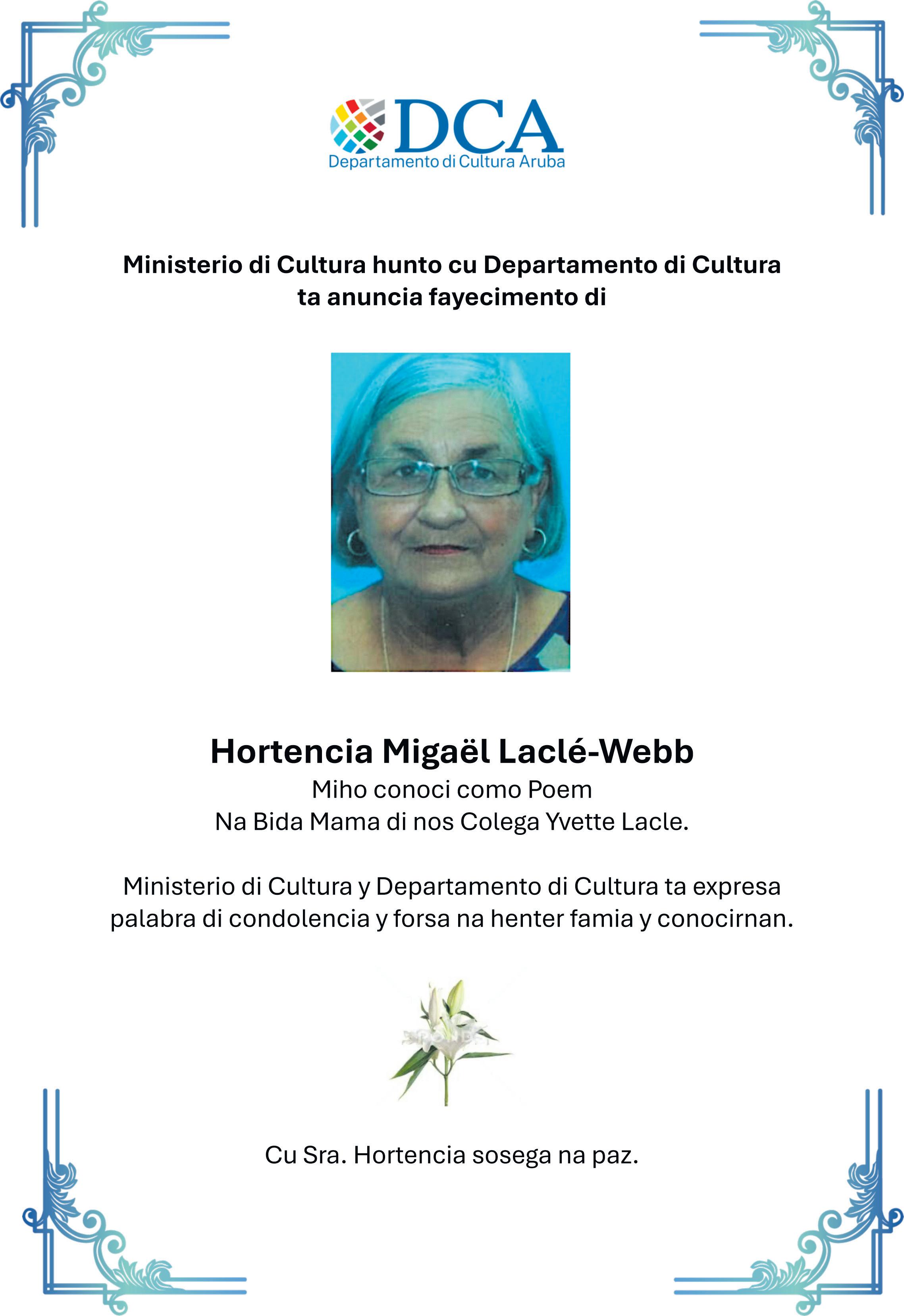 Cu dolor na nos curazon, pero conforme cu boluntad di Dios, nos ta participa fayecimento di:
