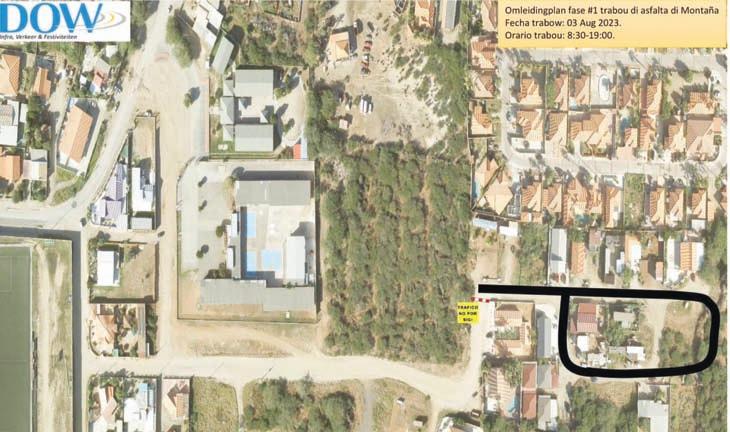 - Fase 1 lo wordo asfalta dia 3 augustus 2023, Orario lo ta 8:30 di mainta te 7’or di anochi.