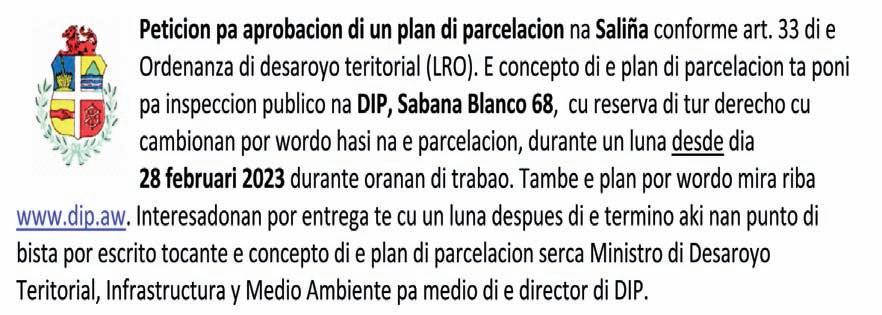 Pagina 28 Diamars 28 February 2023 Brandweer 911 Polis 100 Polis Oranjestad 102 Polis San Nicolas 104 Polis Santa Cruz 105 Polis Shaba 107 Tiplijn 11141