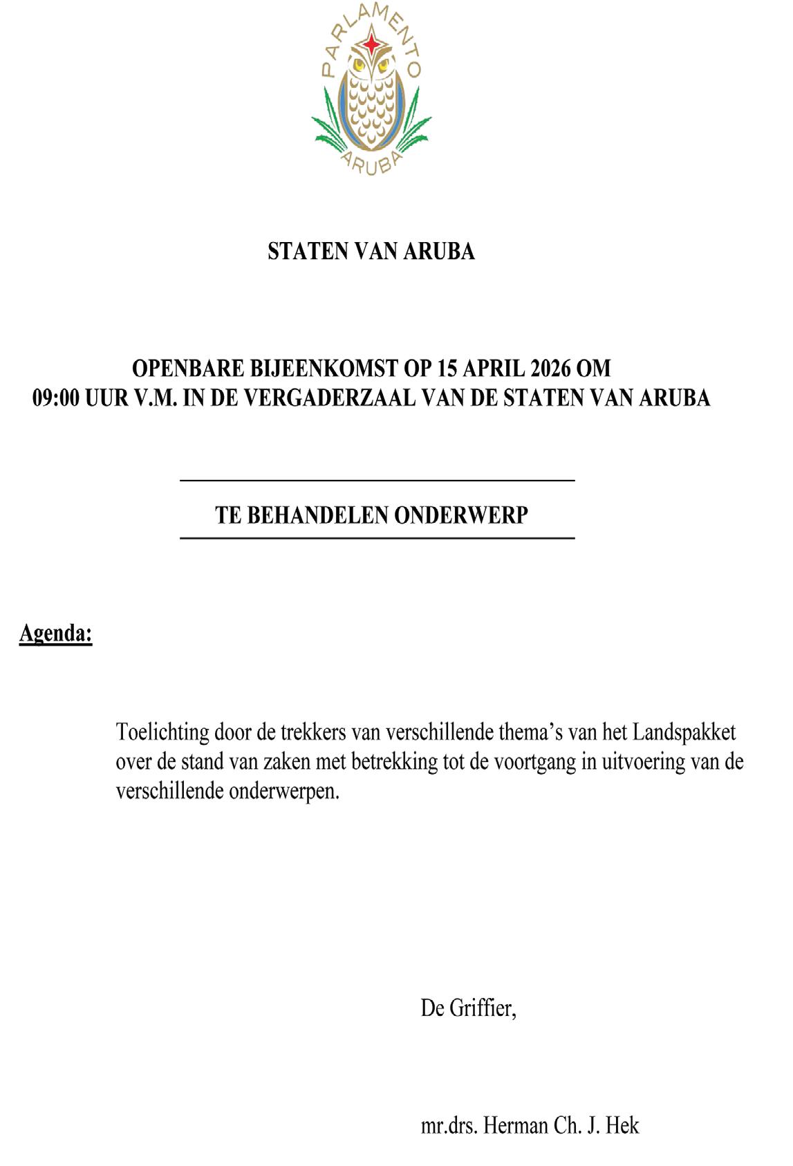 “Asina mes, ya caba dia 9 di december 2020, Gobierno a cuminsa cana e caminda legislativo necesario door di entrega e concepto di Ley di FASE pa su conseho na Raad van Advies kende 21 di januari 2021 a duna su conseho. Despues a sigui e trabounan necesario cu