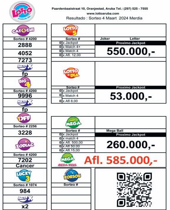 VALIDO TE DIAMARS 05 DI MAART 2024, 18:00 ORA