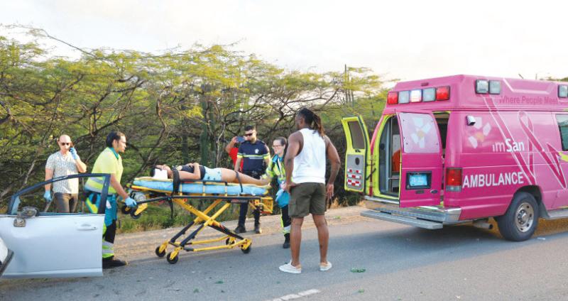 duna e prome auxilio. Ambulance a ser pidi debi cu e dama tawata keha di basta dolor di lomba. Na yegada Paramediconan cuidadosamente a saca e