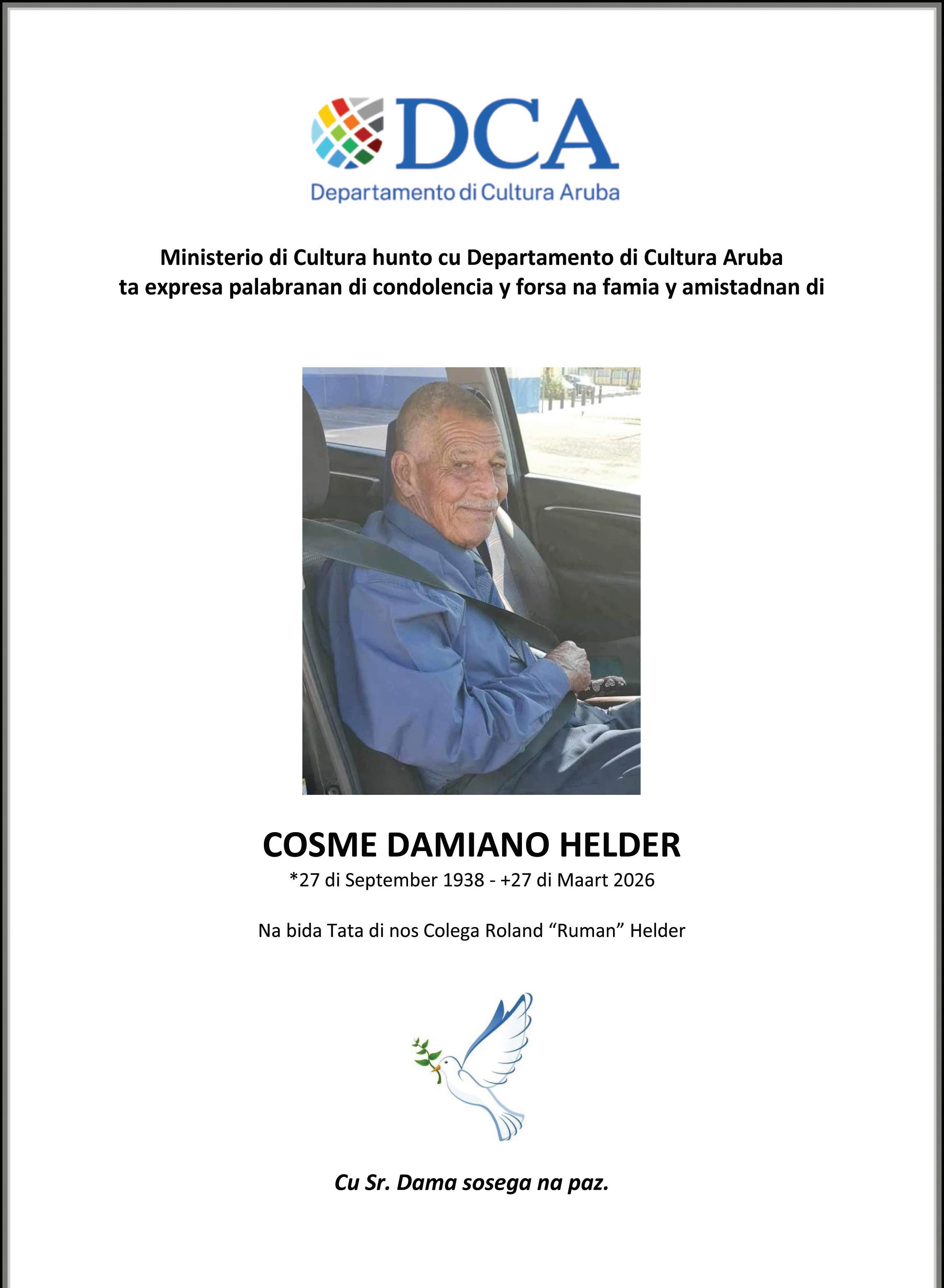 Na lugar di manda flor/krans por haci un donacion na Koningin Wilhemina Kanker Fonds Aruba. Condolencia lo tuma lugar na Aurora Funeral Home diamars 7 di April 2026, di 7or pa 9or di anochi.