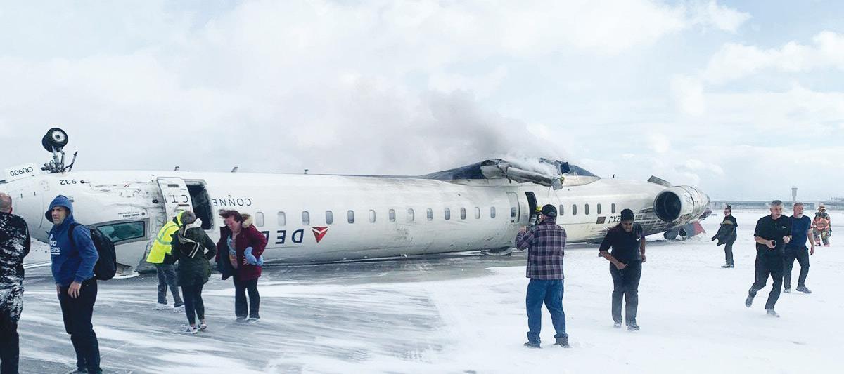 Un avion di Delta Airlines a realisa un aterisahe di emergencia n'e Aeropuerto Internacional Pearson di Toronto dialuna, pa despues bolter boc'abao rib'e pista cu sneeuw despues di su yegada fo'i Minneapolis.