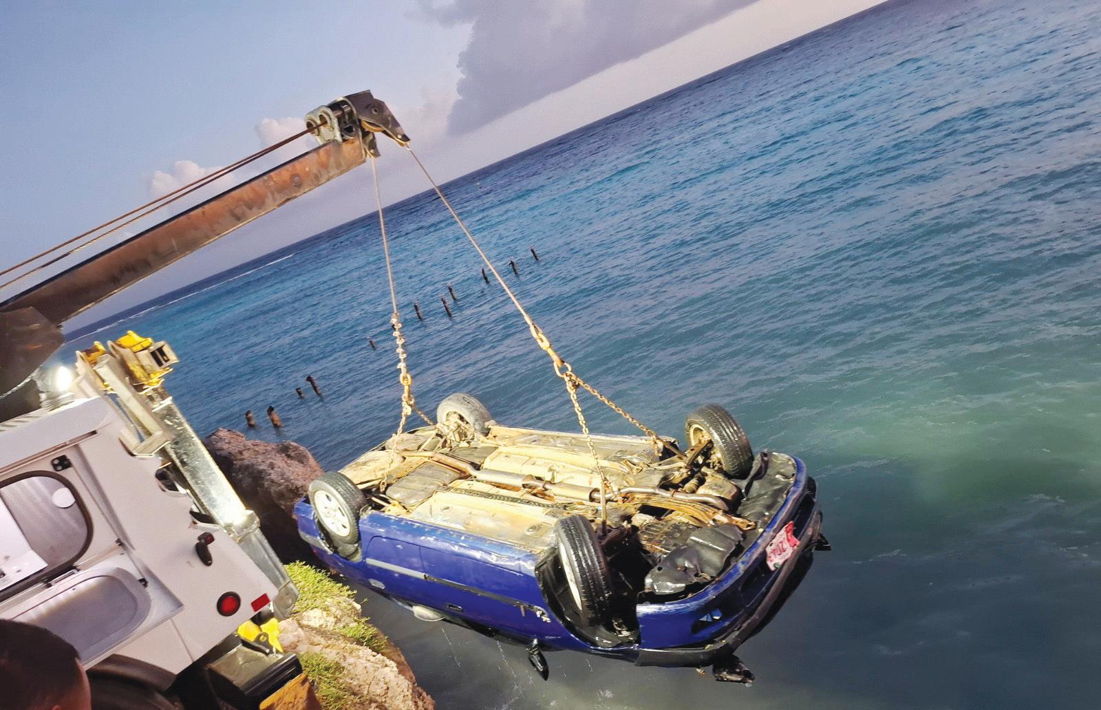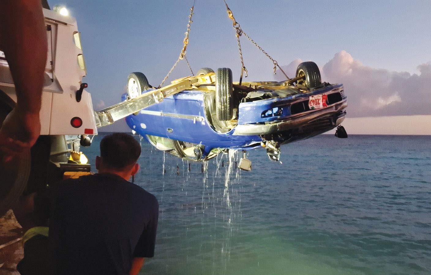 Diadomingo despues di cu un auto a bay awa na Mangel Halto y cu e doño no tin placa pa laga saca e auto, polis mes a yama 2FAST4YOU pa nan bini y saca e auto pa asina evita mas daño na e naturalesa.