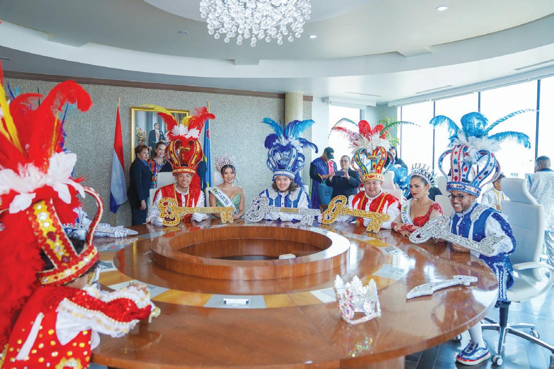 Despues di e traspaso di mando unda yabinan a wordo entrega, e monarcanan di Carnaval y representantenan di SMAC a wordo hiba pa e sala di Conseho di Minister na unda cu Prome Minister a regala nan un bunita pin como gradicimento y asina nan ta keda cu un bunita recuerdo di e bishita tambe.