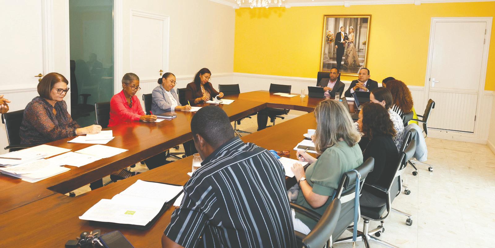 Dialuna atardi Conseho di Minister di Aruba a reuni cu Vice Presidente di Raad van State sr. Thom de Graaf y miembronan di comision di Reino di Raad van State. Na e encuentro aki tambe tabata presente sra. Milly Schwengle miembro di Raad van State pa Aruba.