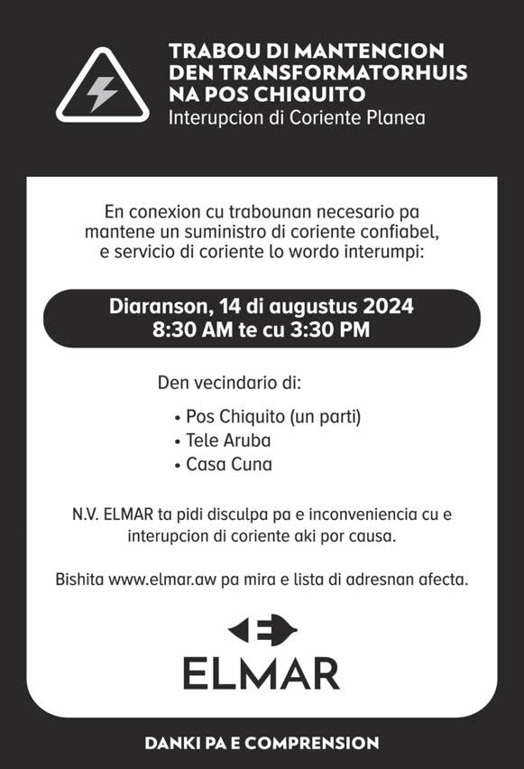 Diasabra y diadomingo awo, dia 17 y 18 di augustus Paws United Aruba (PUA) lo tey atrobe na Centro di Bario Playa Pabao for di 8’or di mainta pa 6’or di atardi. Tin orario specifico cu por trece mascota cual ta te cu 11’or di mainta. Pa mas informacion por acudi e grupo di Faceboook di Paws United Aruba.