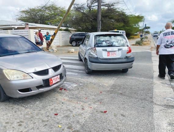trata di un accidente entre 3 auto unda un Hyundai Getz biniendo di pabao a haya chens di un auto di nort y a sali pasa e crusada sin a wak cu tabata bini un MG di zuid y e MG a dal e Getz mande bay dal