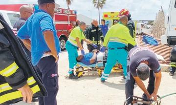 di bombero. Na yegada di e patruya a compronde cu tin un homber bao di e truck pega na un heki. Na yegada di e ambulans nan a nota cu e homber ta na tino y tabata comunica cu nan asina mes cu dolor pero nan mester a warda pa e victima ser saca di abao for di e truck. Cu un forklift di e compania mes a hisa parti di e truck pa asina saca e victima for di eybao pa asina atende. Unabes afo ambulans a tume over y a transporte pa hospital. D.T.I. a bini na e sitio pa asina investiga e accidente na trabao aki.