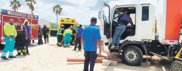 Dialuna merdia a drenta informe di un incidente na trabao unda un truck a pres riba un trahado na e