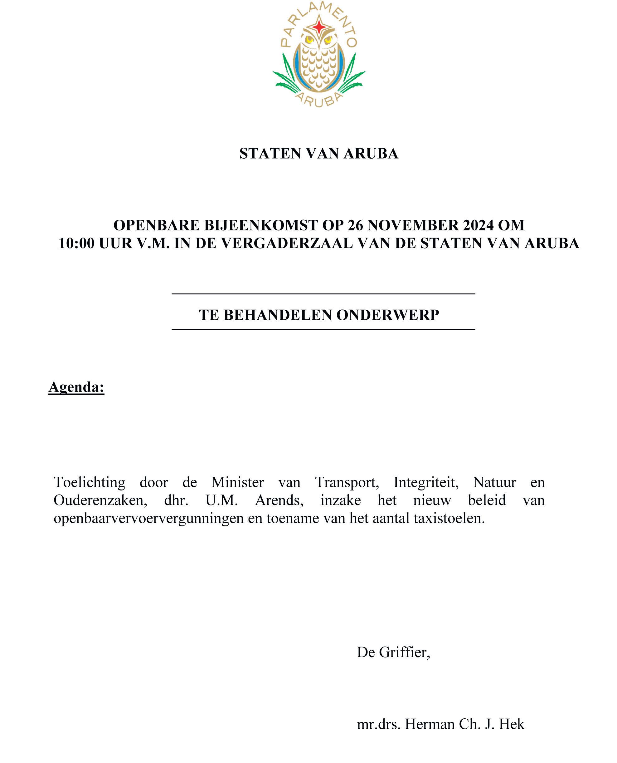 3. Laga hende capacita y serio sigui atende cu Hulanda riba tur loke ta concerni interesnan di Aruba.