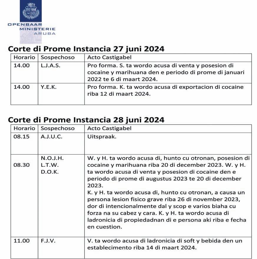 Awe diamars 25 di juni, ta tuma luga den Parlamento di Aruba e reunion publico pa trata Presupuesto Supletorio 2024. Prome Minister Evelyn WeverCroes a indica, cu tin varios cambio den e presupuesto debi cu tin mas entrada cu a wordo premira aña pasa, y lo desea di uza e placa aki pa yuda tur ciudadano cu por wordo yuda na mehora nan poder di compra. Pa por haci esaki na un manera responsabel, gobierno ta presenta e nota di cambio na Parlamento pa aprobacion. Unabes cu e cambionan aki ta aproba, gobierno lo por ehecutanan.