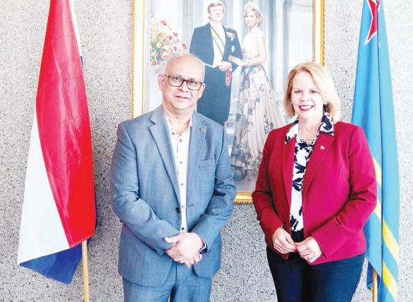 Surinam Sra. Rishma Kuldipsingh na Paramaribo, Surinam, pa inicia combersacionnan y explora e posiblidadnan di coperacion riba tereno di economia entre Aruba cu Surinam y asina purba stimula mas actividad comercial entre e dos Paisnan.
