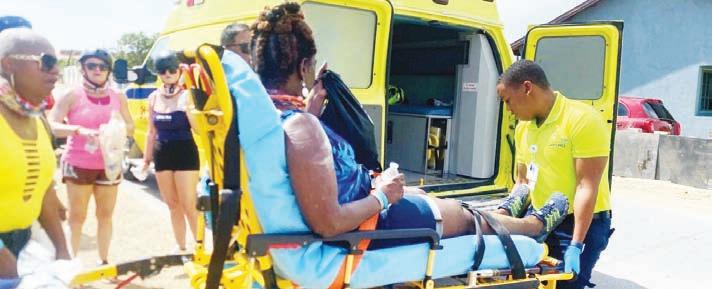 Diadomingo mainta a drenta informe di un accidente cu hende herida na Alto Vista, mesora a dirigi tanto poli como ambulans na e sitio. Na yegada di e patruya a bin comprond cu aki ta trata di un accidente unda cu un dama turista di 64 aña manehando un quadracer pa un motibo desconoci a baha caminda na man drechi y a bay dal stret riba un kashi coriente y su cabes a bay dal riba un zink y a kap net banda di su wowo drechi e kap tabata hundo y mester a bay hospital pa ser cosi. Na yegada di e ambulans nan a atende y a transporte pa hospital.