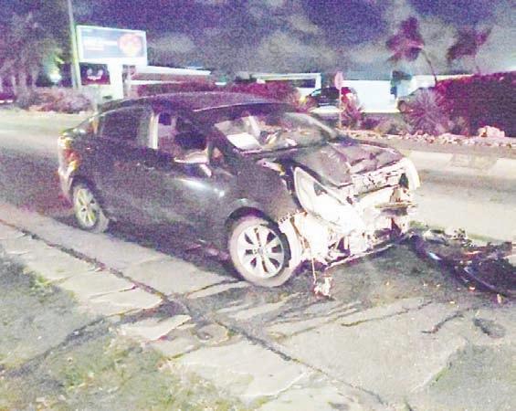 velocidad halto a pasa dal un palo di luz riba e rotonde di Cumana y esaki a dal un otro auto. E auto cu a causa e accidente a bandona e sitio. Polis tin e accidente aki bao investigacion.