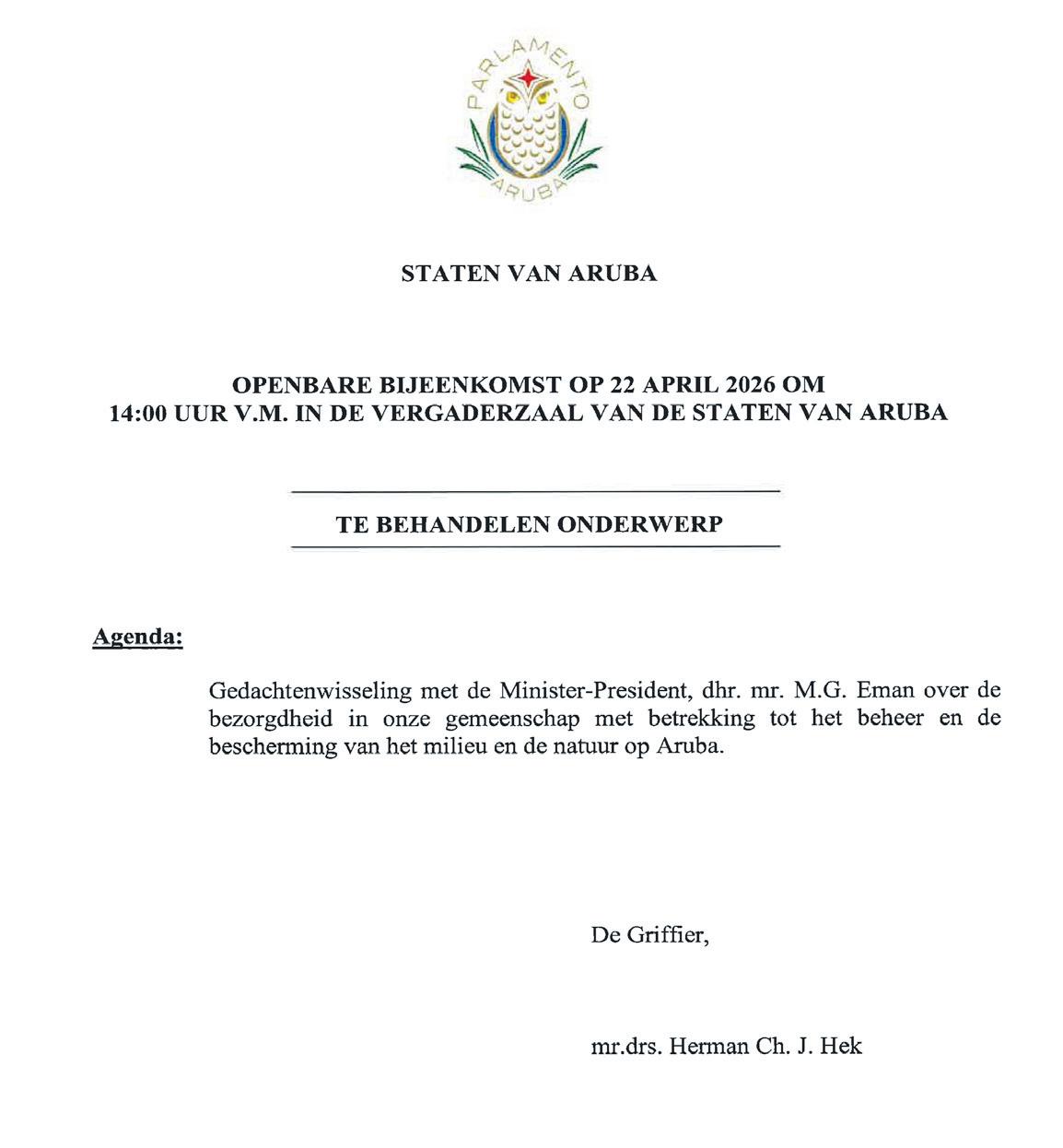 Oranjestad – Awe durante e reunion di Parlamento, Sra. Evelyn Wever-Croes a expresa su profundo preocupacion tocante e situacion alarmante rond di e planta di purificacion di awa na Bubali. Den su presentacion, el a enfatisa cu e instalacion actual a wordo construi pa un Aruba di pasado, y cu nunca a wordo adapta na e crecimiento significativo di poblacion ni e presion di mas cu un miyon turista pa aña. Esaki a resulta den tres problema critico: molester di mal holor den e area di hotelnan, contaminacion di lama cu awa di mal calidad, y un riesgo real cu henter e sistema por haya un colapso total.