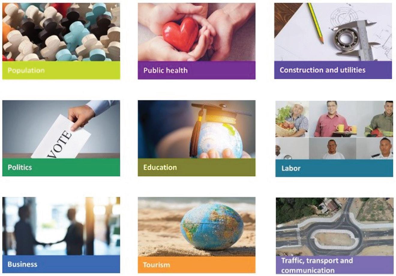 Den e publicacion aki varios topico ta ser trata, manera entre otro cifranan di poblacion, salubridad publico, construccion y utilidadnan, politica, educacion, labor, empresa, turismo, trafico, transporte y comunicacion, comercio cu exterior, aspectonan monetario, bancario