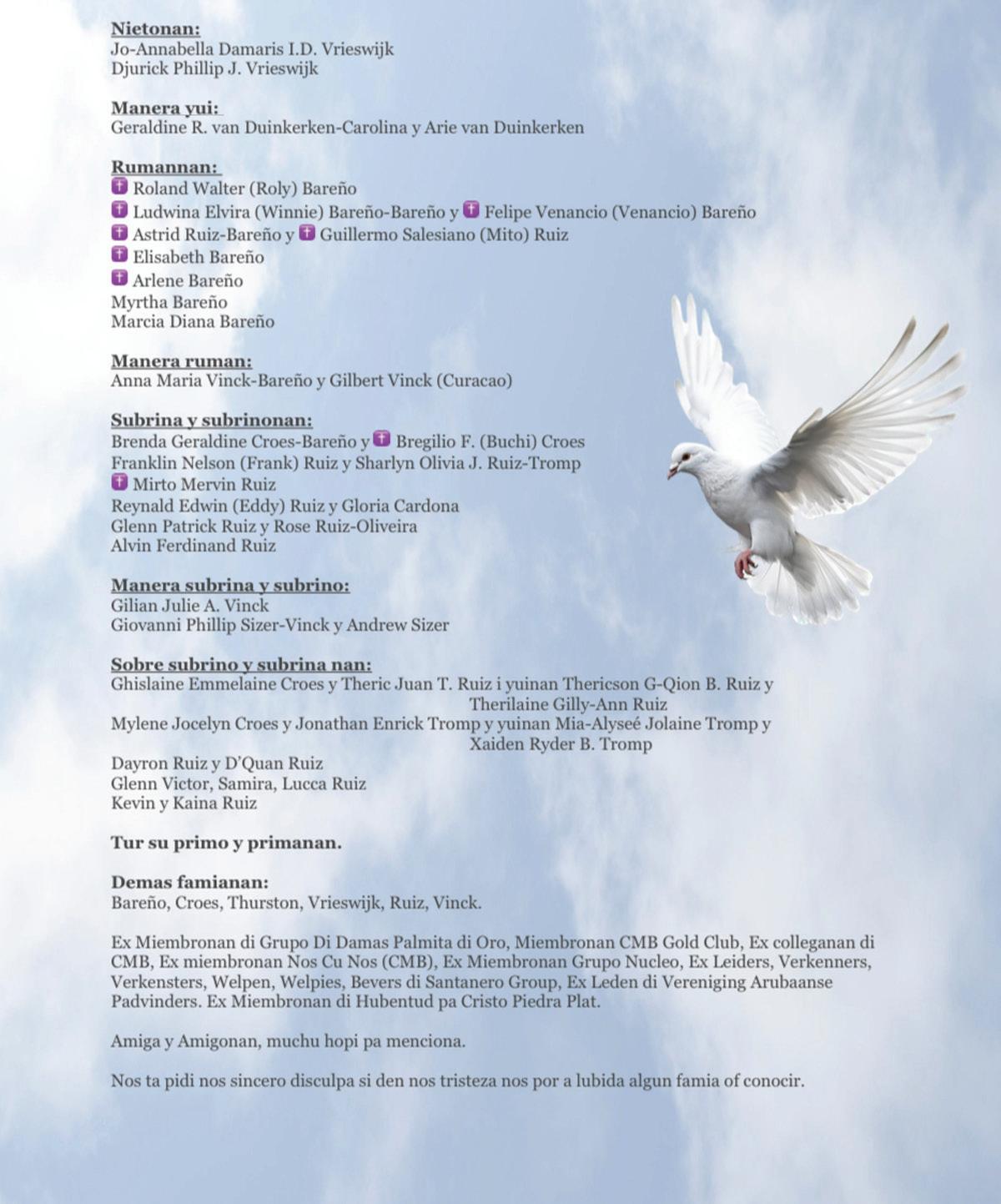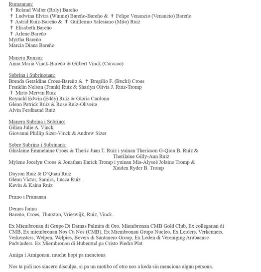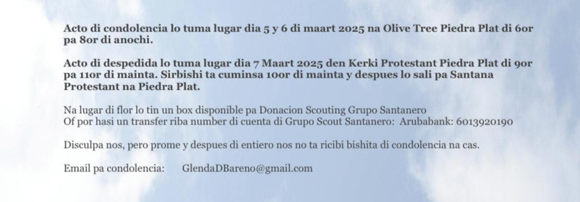 - Cuerpo Policial di Aruba, cu mester mantene y salvaguardia orden publico pa medio diehecucion di leynan relevante, tambe a express nan lamenta pa cu e incidente tragico aki;