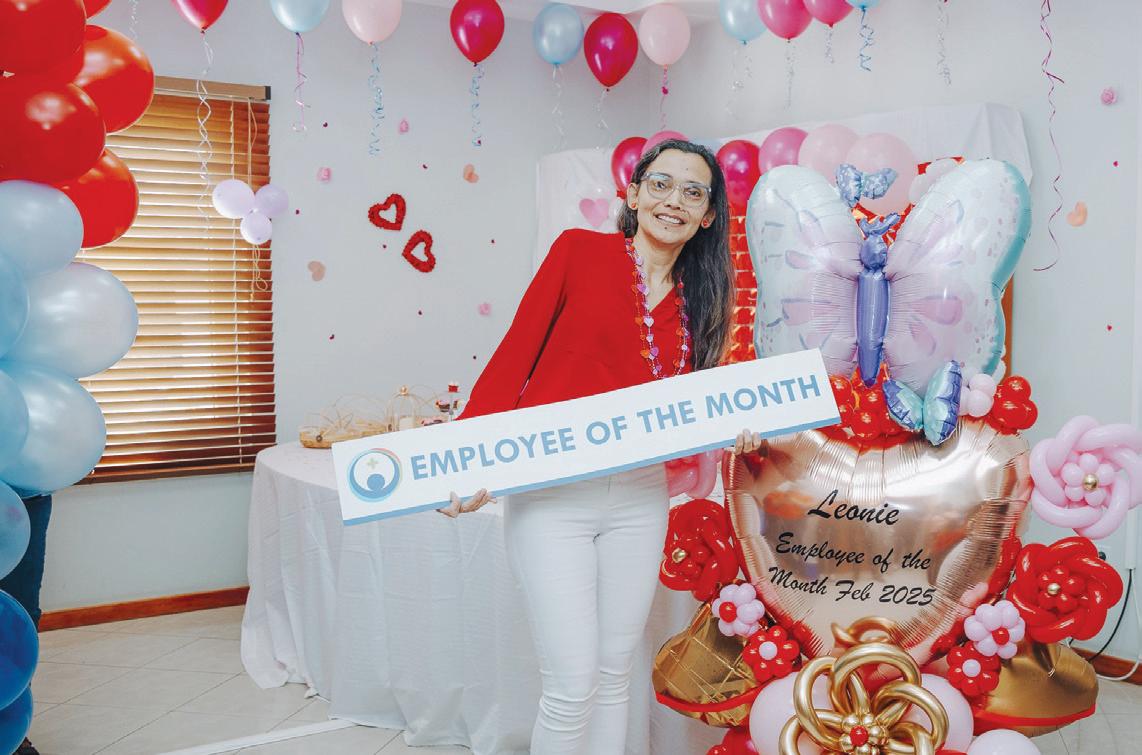 Su motivacion y dedicacion ta un ehempel pa tur. Leonie merece e reconocemento aki, paso sin dje, e policlinica no lo draai mesun eficiente. Hunta di Directiva, management y coleganan ta hopi contento y orguyoso di tin Leonie den team di HOH. Masha pabien cu e bunita titulo di empleado di luna di februari 2025!