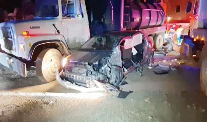 4 Hoben den un Vitz a scapa milagrosamente nan a keda plac Ha entre 2 truck den un accidente