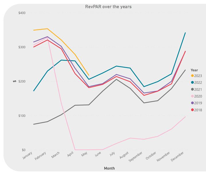 • ADR: E balor averahe di cada camber bendi tabata $295.81; un aumento di 13% compara cu Mei 2022.