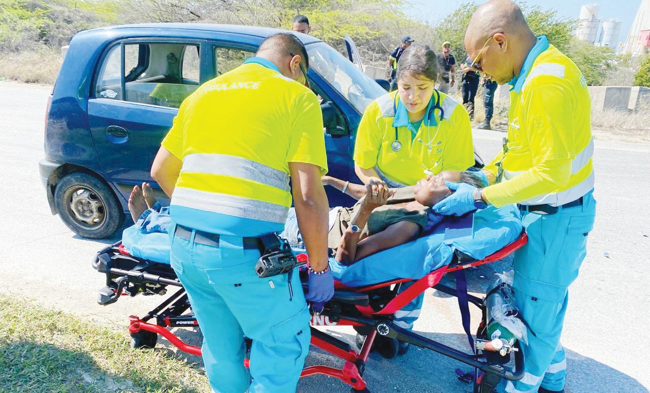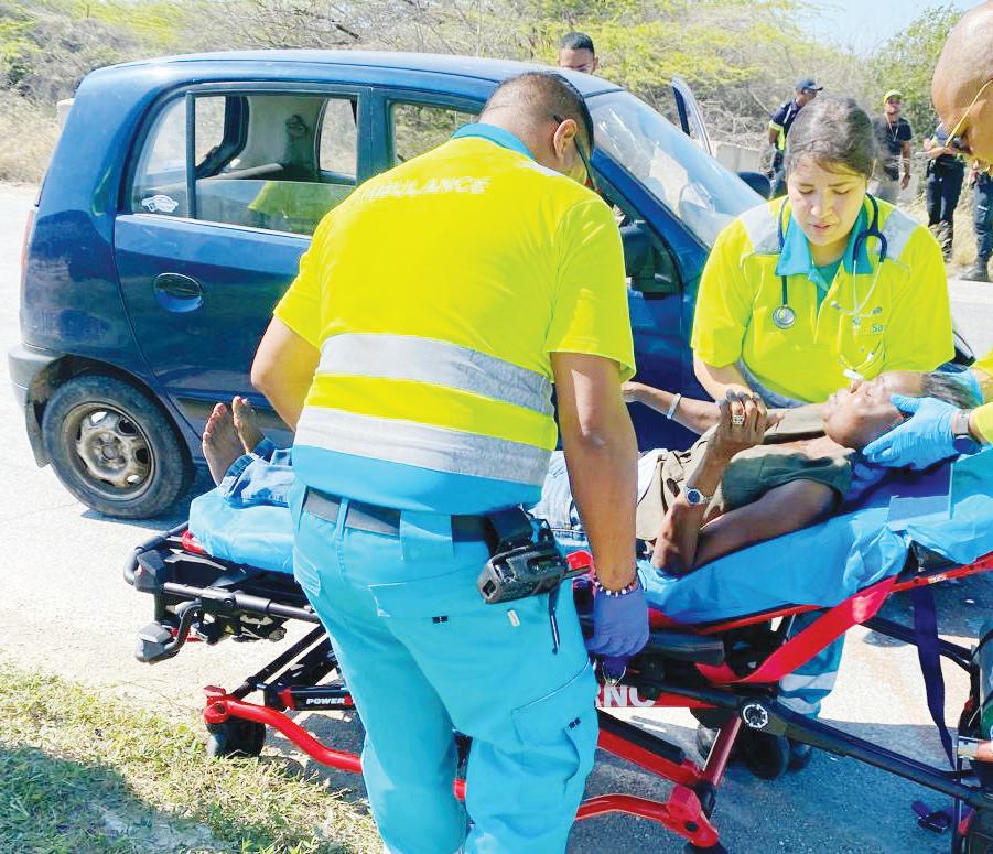 Paramediconan a atende cu e señora, mientras polis di trafico a tuma datos di e incidente.