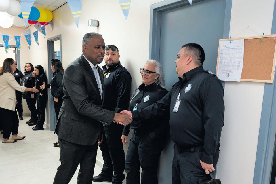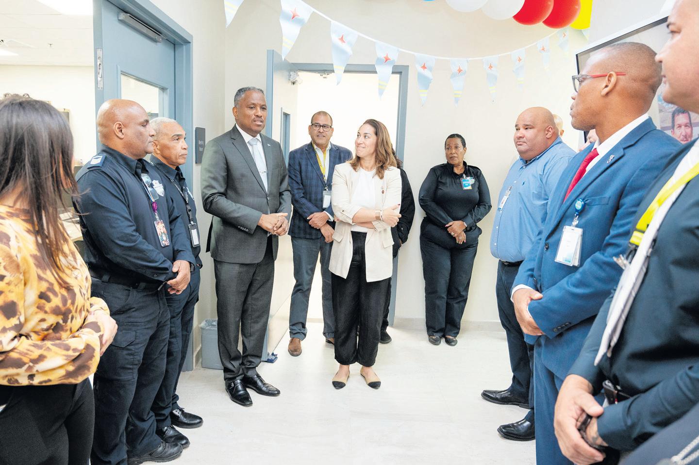Den un momento yena cu orguyo, Minister di Husticia mr. drs. Arthur Dowers hunto cu Minister di Husticia di Sint Maarten mr. Nathalie Tackling a haci un bishita oficial na Inmigration Aruba pa conmemora su 57 aniversario, marcando casi seis decada di dedicacion na proteccion di nos frontera y servicio na comunidad.