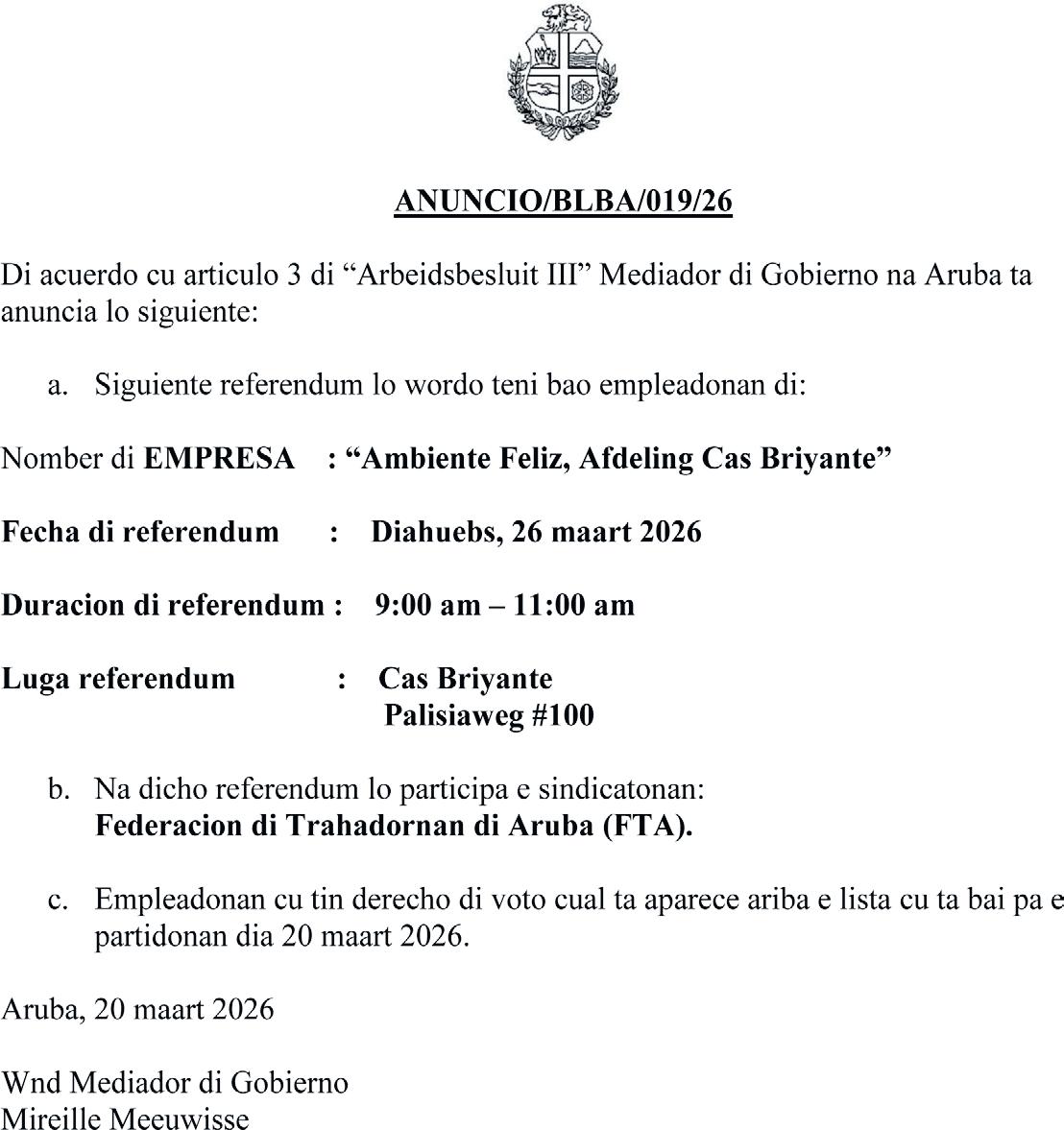 • Inlichtingen: Schriftelijke vragen kunnen tot en met vrijdag 3 april 2026 worden gericht aan de programmamanager via d.f.verhoeven@deaci.aw;