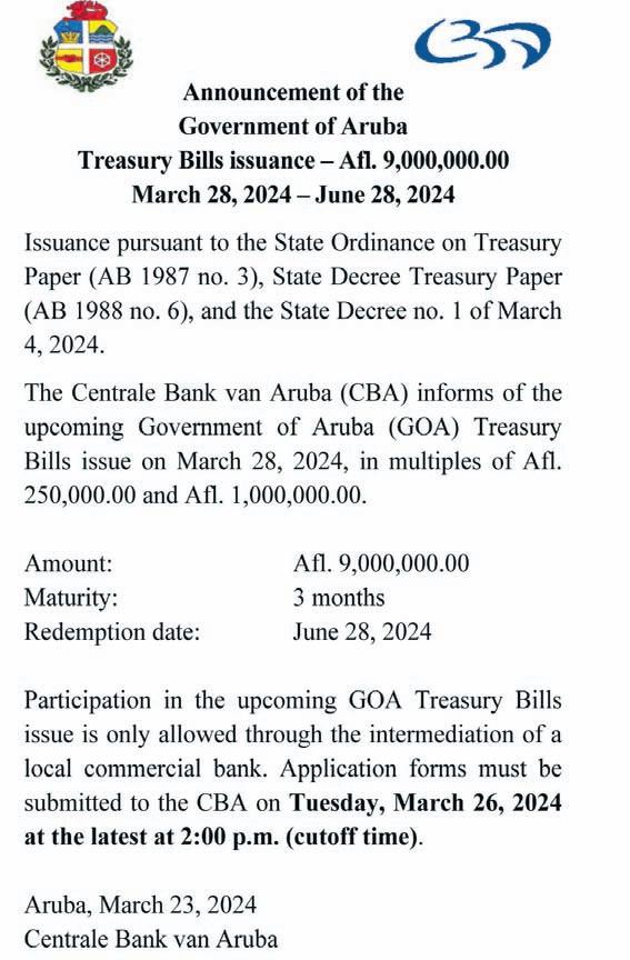 VALIDO TE DIASABRA 23 DI MAART 2024, 18:00 ORA