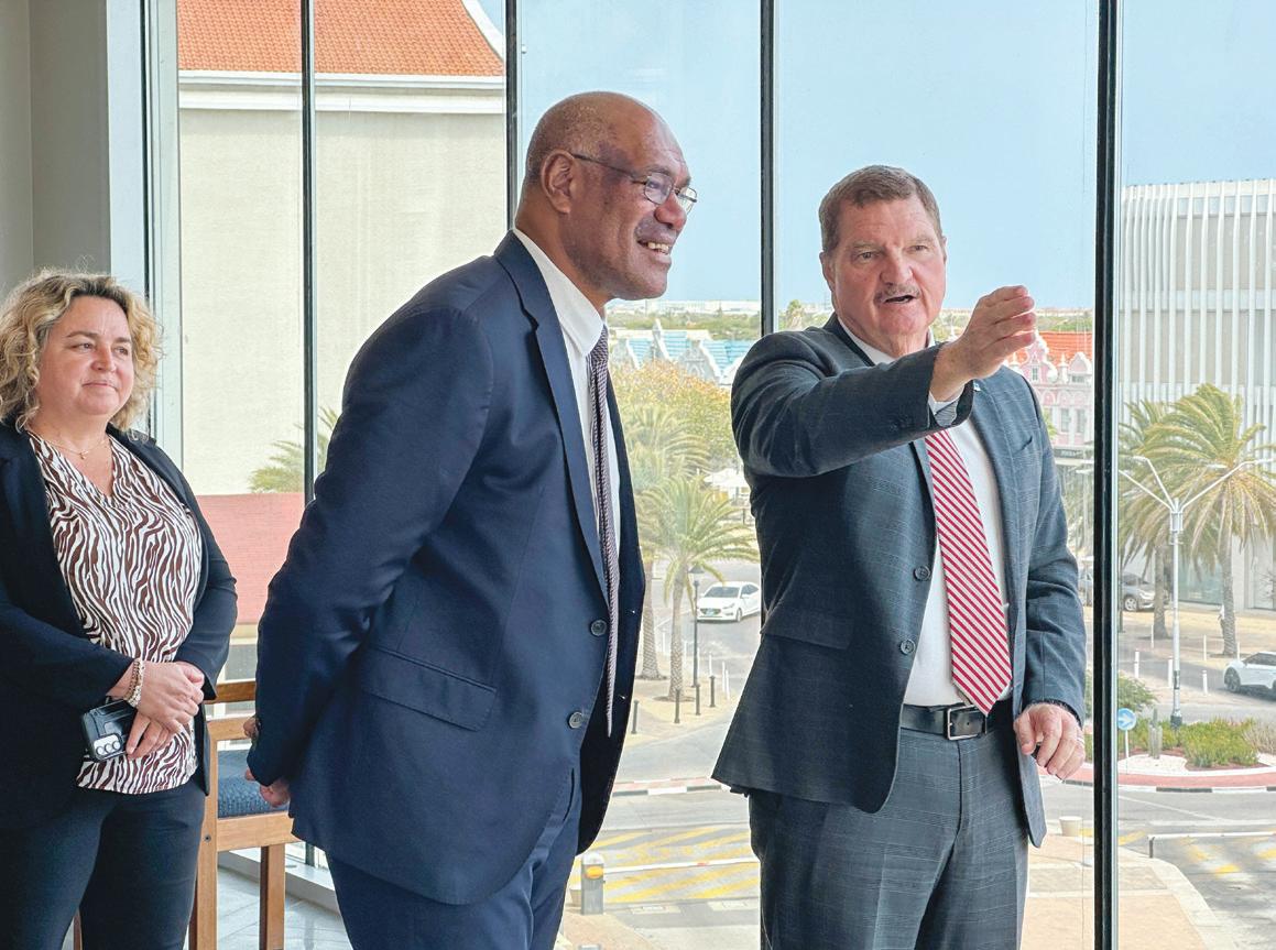 Como parti di e bishita, e delegacion a haya tambe oportunidad pa aprecia e beyesa di Aruba for di e bista panoramico na tercer piso di Bestuurskantoor, reflehando e atractivo unico di nos isla.