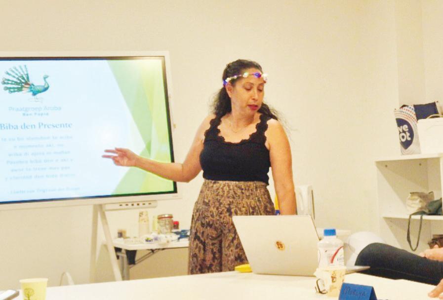Recien mi tabata testigo di tres di e varios encuentronan cu señora Lissette van Trigt a tene na grup’i bishitante cu interes den su praatgroep presenta. E lugar tabata MFA Paradera, pero tambe ta uza MFA Noord y Savaneta. E temanan tabata eo. duna y ricibi compliment, me time y biba den presente.