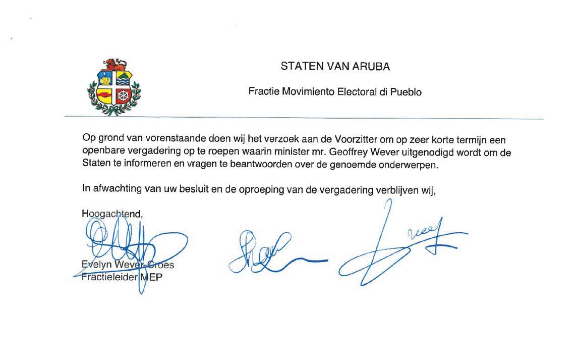 Pa e motibo ey, Fraccion di MEP a tuma e siguiente paso responsabel di dirigi un peticion na gobernador, pidiendo su intervencion pa asegura cu e dialogo democratico den Parlamento wordo restableci. Nos ta kere firmemente den e rol di control di Parlamento y den e necesidad pa tene un discusion habri, serio y enfoca riba solucion.