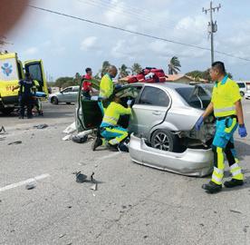 accidente unda un Chevrolet Aveo biniendo for di e rotonde Paradera y a bay pa bira bay Rooi