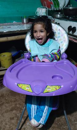 Mi hija Karen desde su nacimiento fue diagnósticada con parálisis cerebral no moderada, ella no habla ni camina, solo con señas y movimientos se comunica con nosotros. Esa condición hace que ella tenga un tratamiento especial, donde necesita buena alimentación, dedicación de tiempo completo y pañales constantemente.
