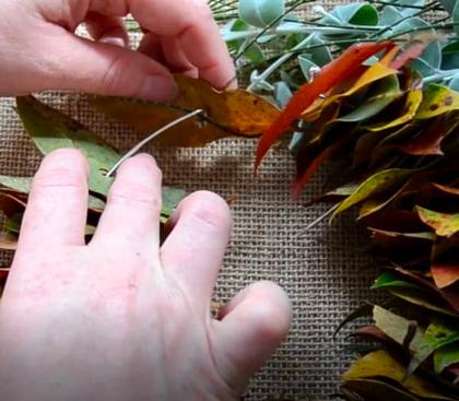 Perforar todas las hojas que tengan. Enhebrar la mitad de las hojas en el aro de metal. Asegurar los bordes con hilo, en el caso de que las hojas sean pesadas para que se vea el aro completo y nos queden vacíos