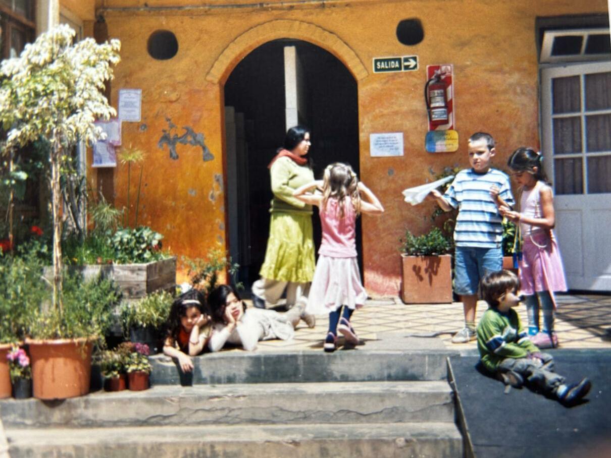Hubo que picarla íntegra Sacarle todo el revoque Muchas partes eran de barro Había humedad Pero había espacio Teníamos yo que sé cuántos cuartos Yo calculo que toda esa obra nos llevó … Debe haber sido en el 93´. Porque fue mucho lo que hicimos. En el 93´y 94´trabajamos un grupo. Ahí no era yo sola. Yo vendí mi casa y con eso compré esto. Y yo me había preparado durante muchos años para ser maestra waldorf en Chile. Esto empezó todo en el 94 ´ . Y todo ese año se trabajó enormemente con un grupito. Digamos, yo me instalé a vivir en la obra. Me encargué todo de la demolición de la obra. No solo demolí. Pulimos las puertas. Y eran manos y manos. La casa era viejísima y cada uno que había venido la había pintado de un color distinto. Algunas personas del grupo antroposófico muchas de las cuales habíamos hecho seminarios con Claudio Rauch dijeron vamos a ayudarte. Y también empezamos a hacer reuniones para dar a conocer el proyecto.