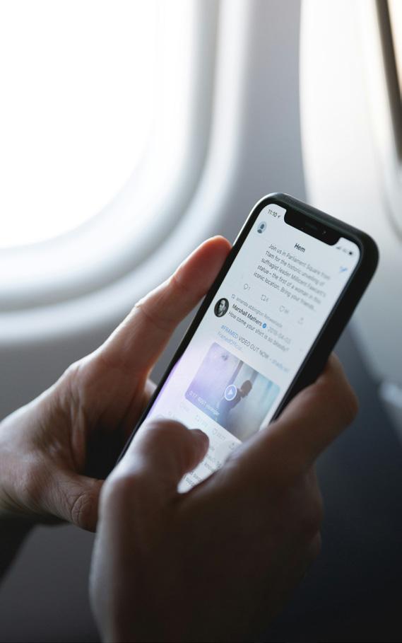 y recibir mensajes, además de ver toda la información relacionada con el vuelo y sus conexiones. ¡Tus clientes siempre estarán en línea durante su viaje!