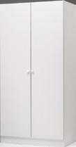 Norema garderobeskap med glatte slagdører modell «Melamin» i hvit med «Hvit plastknott», 1 meter skap pr. sengeplass vist på plantegning.
