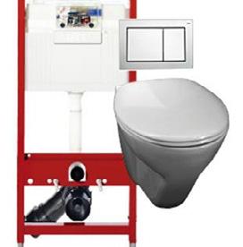 Veggmontert toalett, softclose sete, hvit trykkplate.
